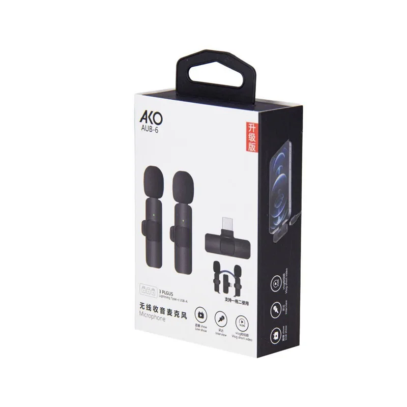 میکروفون یقه ای دوتایی آکو مدل AUB-6/دارای دو عدد میکروفون گیرنده صدا و یک عدد فرستنده/محدوده عملکرد: 20 متر /میکروفون با حساسیت بالا مناسب برای ضبط صدا، مصاحبه برگزاری لایو و… بدون نیاز به نصب نرم افزار
